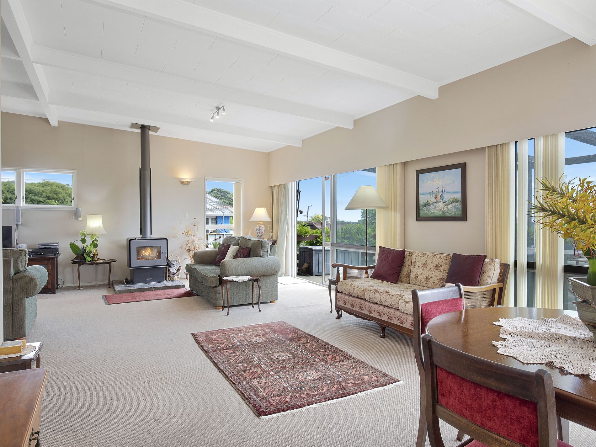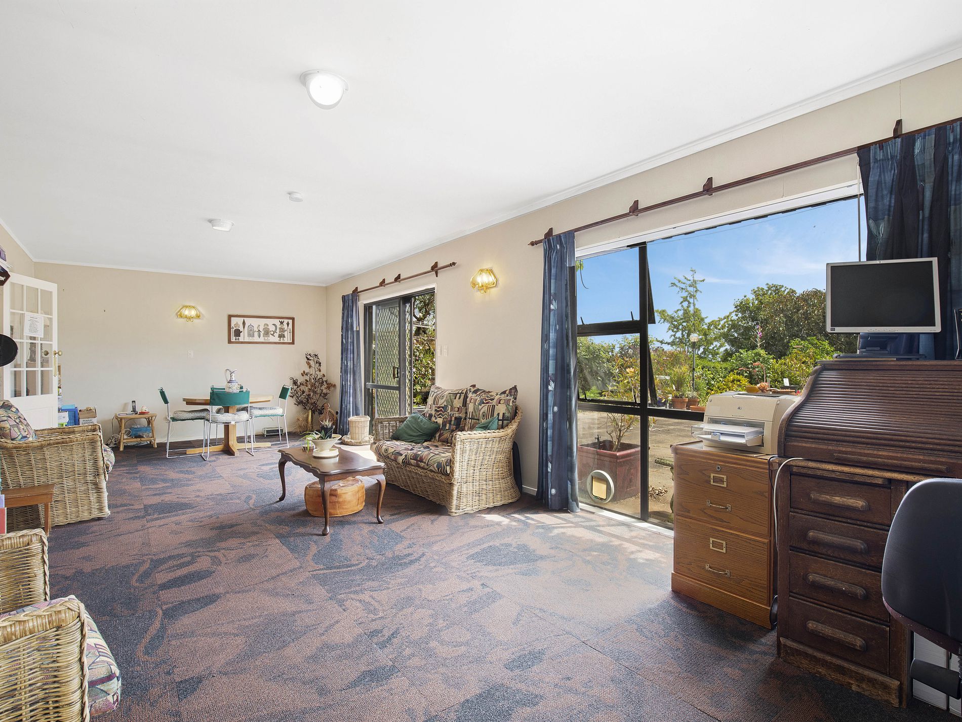 The garden is a true delight, featuring an impressive collection of fruit trees — fig, walnut, mandarin, lemon, grapefruit, orange, plum — plus a thriving grapevine. Off the living area, the balcony is graced by one of the most established wisteria vines we’ve ever seen. And what a balcony it is, with sweeping views of our beloved Kāpiti Island and, on a clear day, a panorama stretching from D'Urville Island all the way to Mount Taranaki.