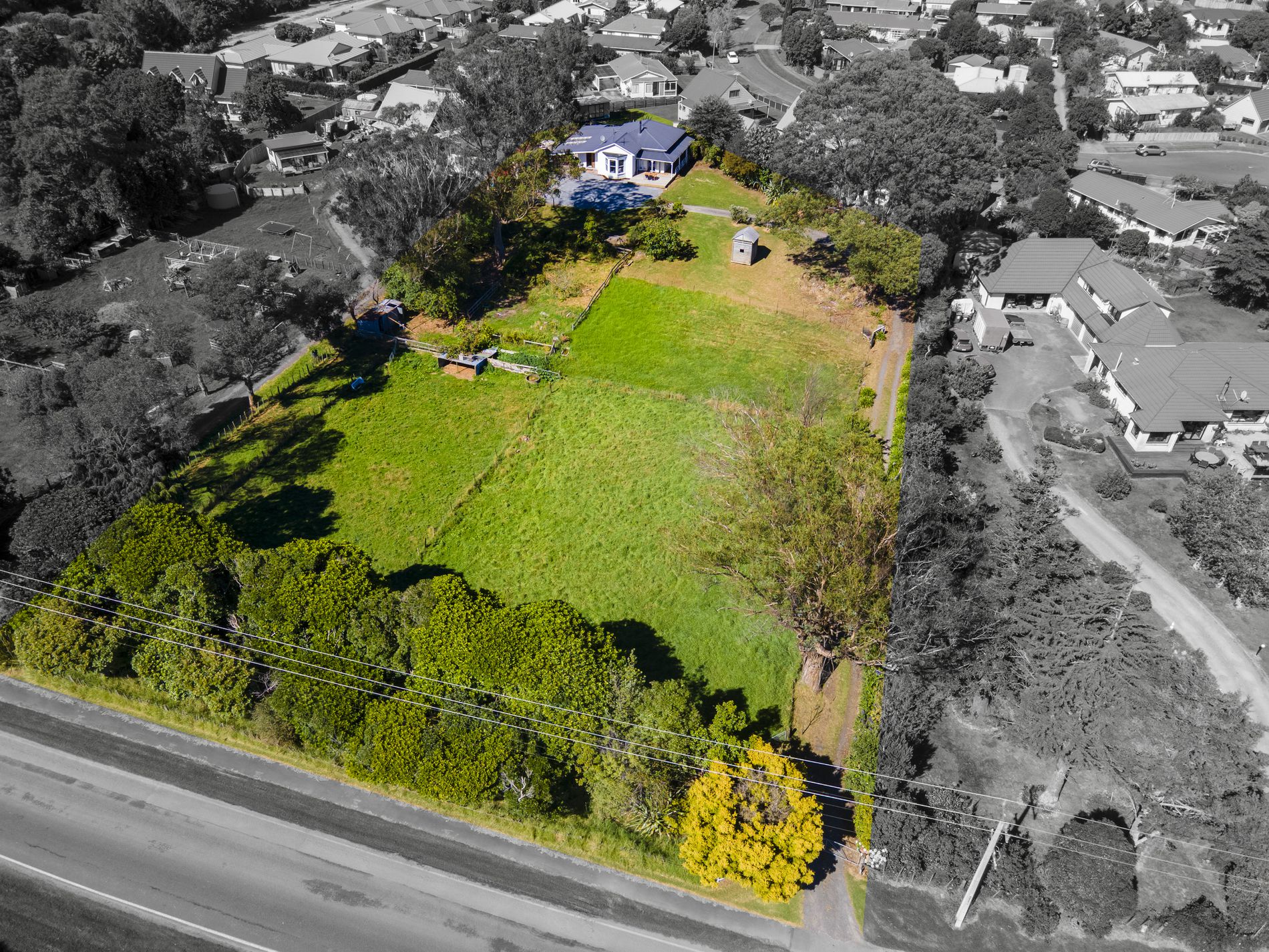 Step into the timeless elegance of this 1915 villa, perfectly positioned on a generous 5,365m² lifestyle section in one of the area’s most coveted locations. This four-bedroom home celebrates a bygone era with its high ceilings and native timber floors, offering a sense of scale and soul that modern builds rarely match.