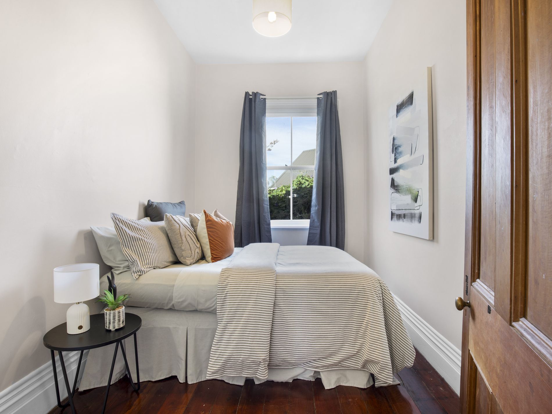 The interior presents a clean and tidy canvas, featuring a spacious living area kept cozy by a wood burner, heat pump, and heat transfer system. The gorgeous, tiled bathroom adds a touch of modern luxury to the classic layout. While perfectly comfortable now, there is clear opportunity for a new owner to further enhance the home’s heritage character and value through thoughtful updates.