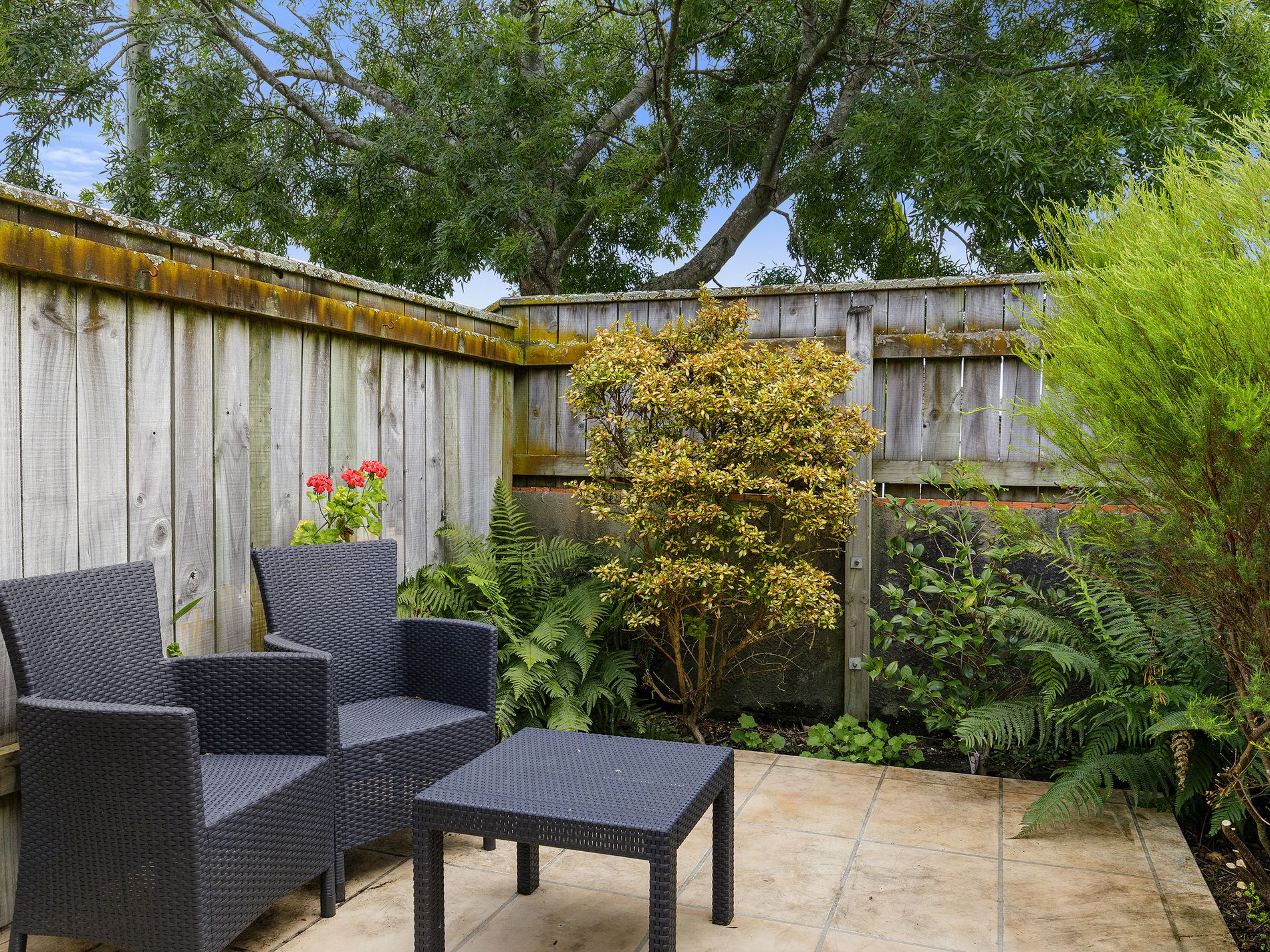 Step outside and enjoy your own private courtyard, an ideal spot for morning coffee, summer barbecues, or simply relaxing in peace. The established gardens add a touch of greenery and privacy while still keeping the property easy to maintain.